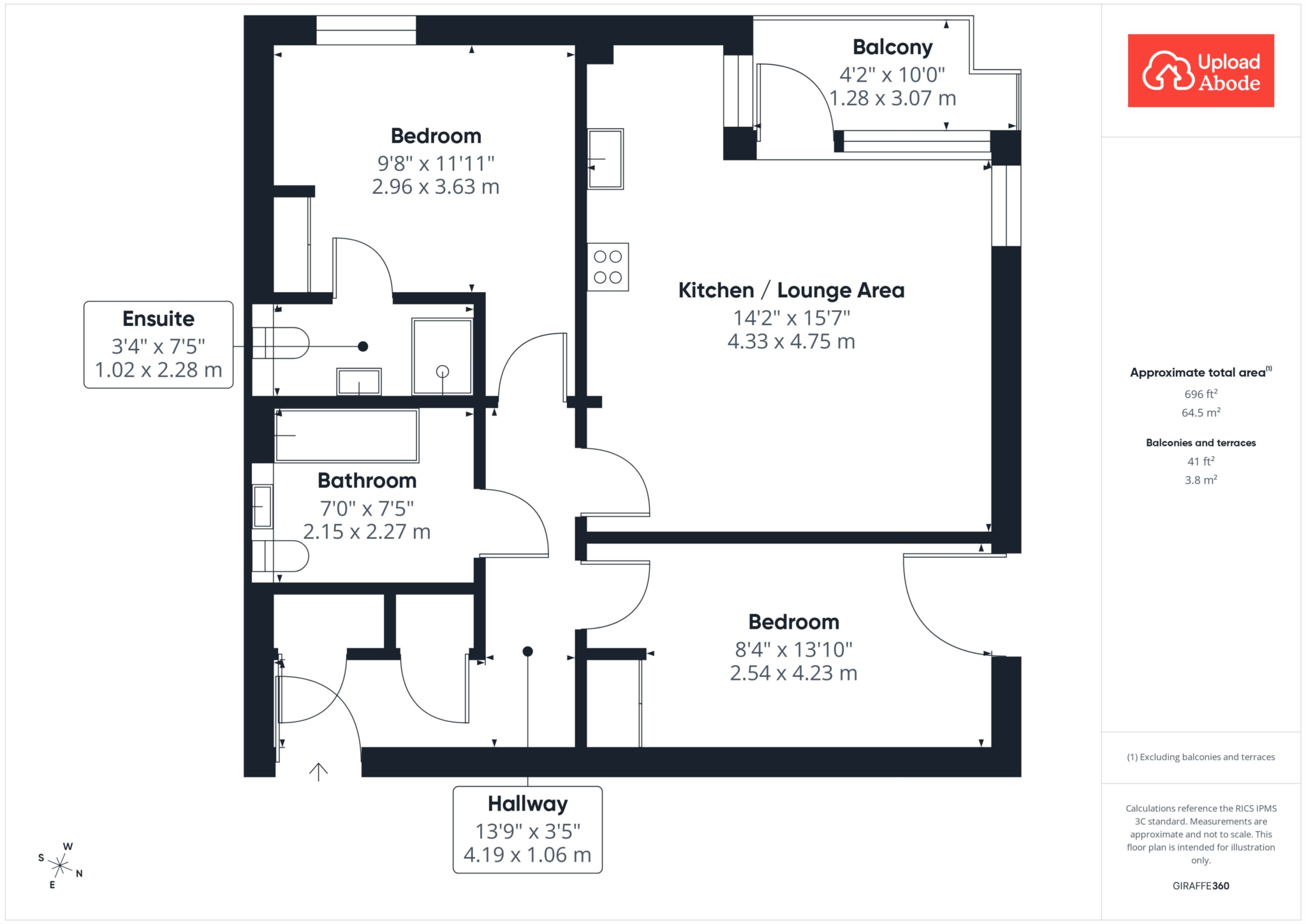 Both bedrooms are well sized and finished in a calm, neutral style, offering flexible use whether for sleeping, working from home or accommodating guests. The principal bedroom benefits from an en suite, while the main bathroom is finished with clean, contemporary fittings and a fresh, modern feel.